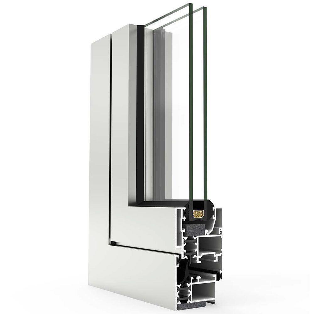 Serie abisagrada de 45 mm de profundidad con una rotura de puente térmico de 14,6 mm. Se trata de un sistema versátil, para climas suaves, con una gran variedad de posibilidades de apertura.